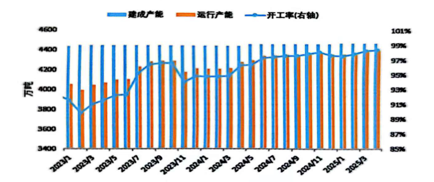 2025年4月,國內(nèi)電解鋁生產(chǎn)能力小幅提升,截至4月底建成產(chǎn)能4467萬噸/年,運(yùn)行產(chǎn)能4393萬噸/年,環(huán)比增加4萬噸/年。本月運(yùn)行產(chǎn)能增量主要來自四川、青海等停產(chǎn)產(chǎn)能的恢復(fù)和新增項(xiàng)目的釋放。在總產(chǎn)能接近“天花板”和開工率已達(dá)到98%以上的背景下,產(chǎn)能和產(chǎn)量的增長空間都已十分有限。4月份產(chǎn)量預(yù)計(jì)為362萬噸,同比增長3.4%,日均產(chǎn)量12.07萬噸,環(huán)比小幅增長0.2%。