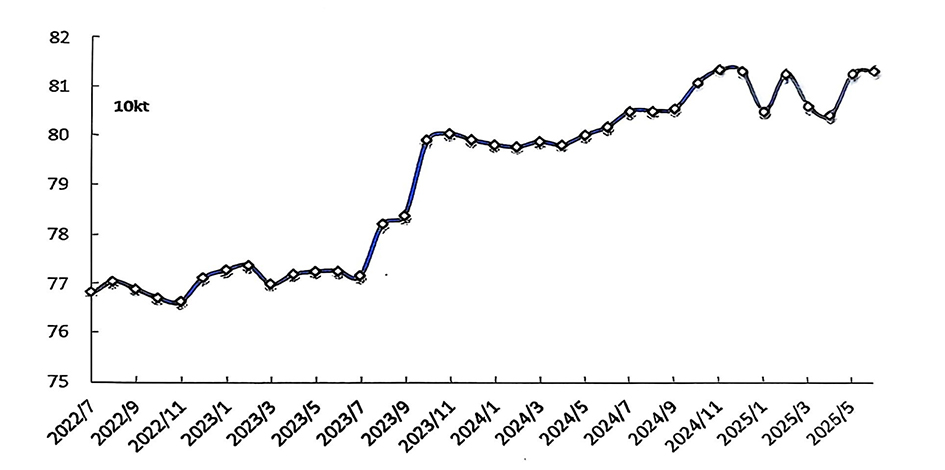 經(jīng)調(diào)整,6月份產(chǎn)量為364.5萬(wàn)噸;預(yù)計(jì)7月份產(chǎn)量為376.9萬(wàn)噸,同比增長(zhǎng)1.5%,日均產(chǎn)量12.16萬(wàn)噸,環(huán)比小幅增長(zhǎng)0.07%。