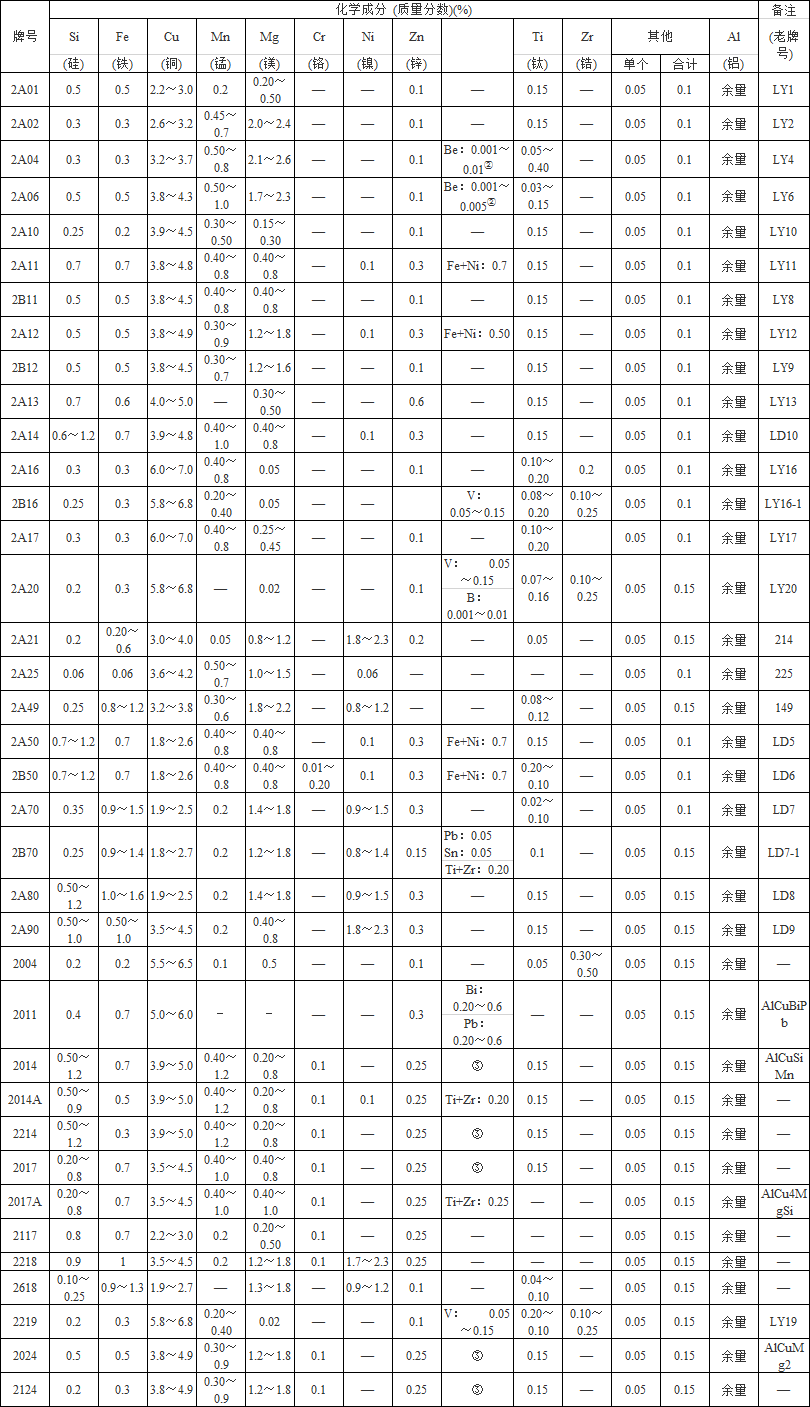 4-2XXX系列硬鋁應(yīng)用較為廣泛的牌號:2024(2A12)、LY12、LY11、2A11、2A14(LD10)、2017、2A17等。