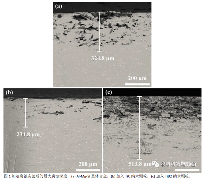 據(jù)吉林大學姜啟川教授課題組研究發(fā)現(xiàn),經(jīng)TiC納米顆粒細化的鋁合金組織,TiC顆粒大多分布在晶粒內(nèi)部,減少了晶界處的第二相數(shù)量,降低了晶間腐蝕速率,并間接提高了鈍化膜的連續(xù)性,從而獲得了更好的抗腐蝕性能,而TiB2納米顆粒細化的鋁合金組織,TiB2顆粒大多分布在晶界處,增加了晶界處的第二相數(shù)量,大大提高了晶間腐蝕速率,并破壞了鈍化膜的連續(xù)性,從而導致了抗腐蝕性能的降低。而本次峰會中,金橋集團郭總的生產(chǎn)實踐數(shù)據(jù),對鋁鈦碳防腐性能的提升作用,也進一步提供了佐證。